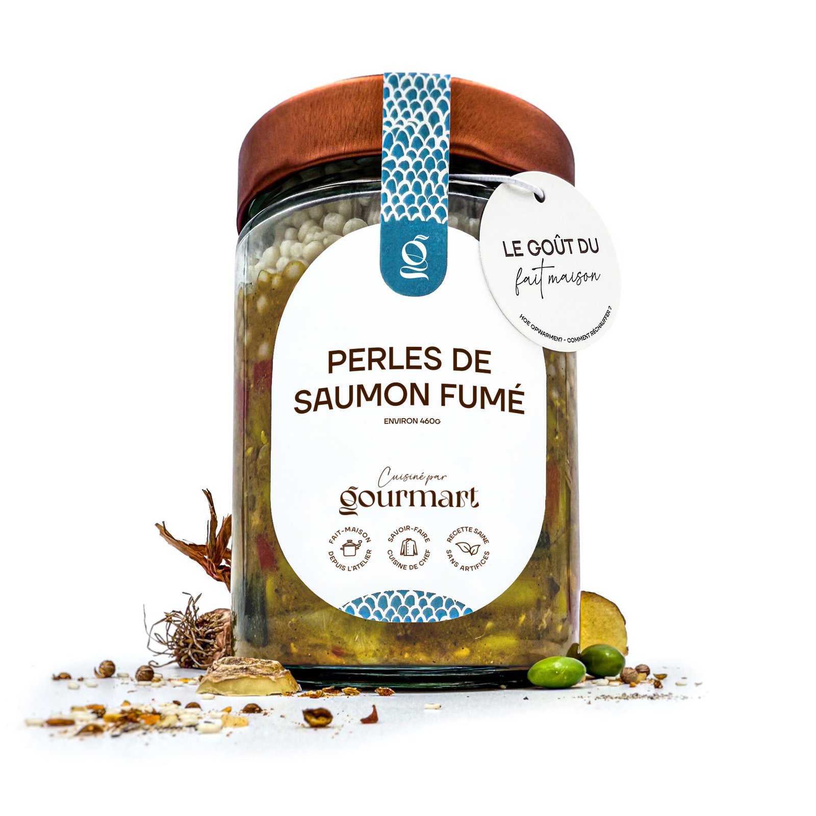 Le saumon fumé, riche et savoureux, fusionne à merveille avec ce mélange unique d'épices. Le curry de Madras, légèrement épicé, apporte sa rondeur. La cannelle et le gingembre, épices phares de l'orient, viennent tempérer la chaleur, tandis que la coriandre ajoute une touche de fraîcheur subtile. Une véritable danse de saveurs qui réinvente le saumon fumé et lui donne une profondeur nouvelle.